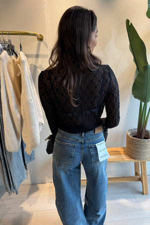 Vervollständigen Sie Ihr Outfit mit dem Mesh Top aus schwarzer Spitze mit Blumenmuster. Das zarte Material fühlt sich leicht und angenehm an, sodass Sie es sowohl lässig als auch elegant tragen können. Die ausgestellten Ärmel verleihen ein verspieltes und romantisches Detail. Perfekt kombinierbar mit Jeans, Rock oder Shorts für einen kompletten Look.